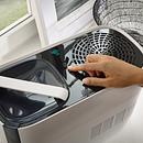 Productbeschrijving: Vooral in de winter kan ons welbevinden sterk lijden onder de veel te droge lucht van de verwarming in huis. Om je luchtwegen op een gezonde en natuurlijke manier te beschermen, heb je een luchtbevochtiger nodig die de lucht bijzonder efficiënt en hygiënisch bevochtigt. Dat is precies wat de Evaporation Technology van de Soehnle Airfresh Hygro 500 doet. De luchtbevochtiger zuigt de droge lucht aan, filtert grote deeltjes zoals haren en stof eruit en voegt er nieuwe, frisse watermoleculen aan toe. Zonder het water te verwarmen en zonder zichtbare waterdamp. De bevochtigde lucht wordt gelijkmatig over de hele ruimte verdeeld. De Airfresh Hygro 500 geeft daarbij veel minder bacteriën af dan een ultrasone luchtreiniger – maar liefst tot 99% minder bacteriën. Met een geïntegreerde vochtigheidssensor bewaakt de Airfresh Hygro 500 steeds de actuele luchtvochtigheid en geeft deze goed leesbaar aan op het verlichte lcd-display. In automatische modus past de luchtbevochtiger de blaassnelheid aan, als de luchtvochtigheid stijgt of daalt, en zorgt zo voor een constante gezonde luchtvochtigheid. Met de traploze instelling kun je de luchtvochtigheid, tot 75%, ook optimaal aanpassen aan je wensen. Bovendien is de blaassnelheid – en daarmee de gewenste intensiteit van de vochtafgifte, met de drie standen te regelen. Ideaal, als het eens een keer snel moet gaan. Als de gewenste vochtigheidsgraad bereikt is of de tank leeg is, dan schakelt de luchtbevochtiger zich automatisch uit. Met de timer kun je de duur van de luchtbevochtiging instellen, tot maximaal 12 uur. De Airfresh Hygro 500 kan, dankzij de grote uitneembare watertank van 4,9 liter, ruimtes tot 50 m² optimaal bevochtigen. Je wilt natuurlijk graag kunnen vertrouwen op constant schone lucht. Daarom geeft de filterindicatie aan, wanneer het filter vervangen moet worden.
