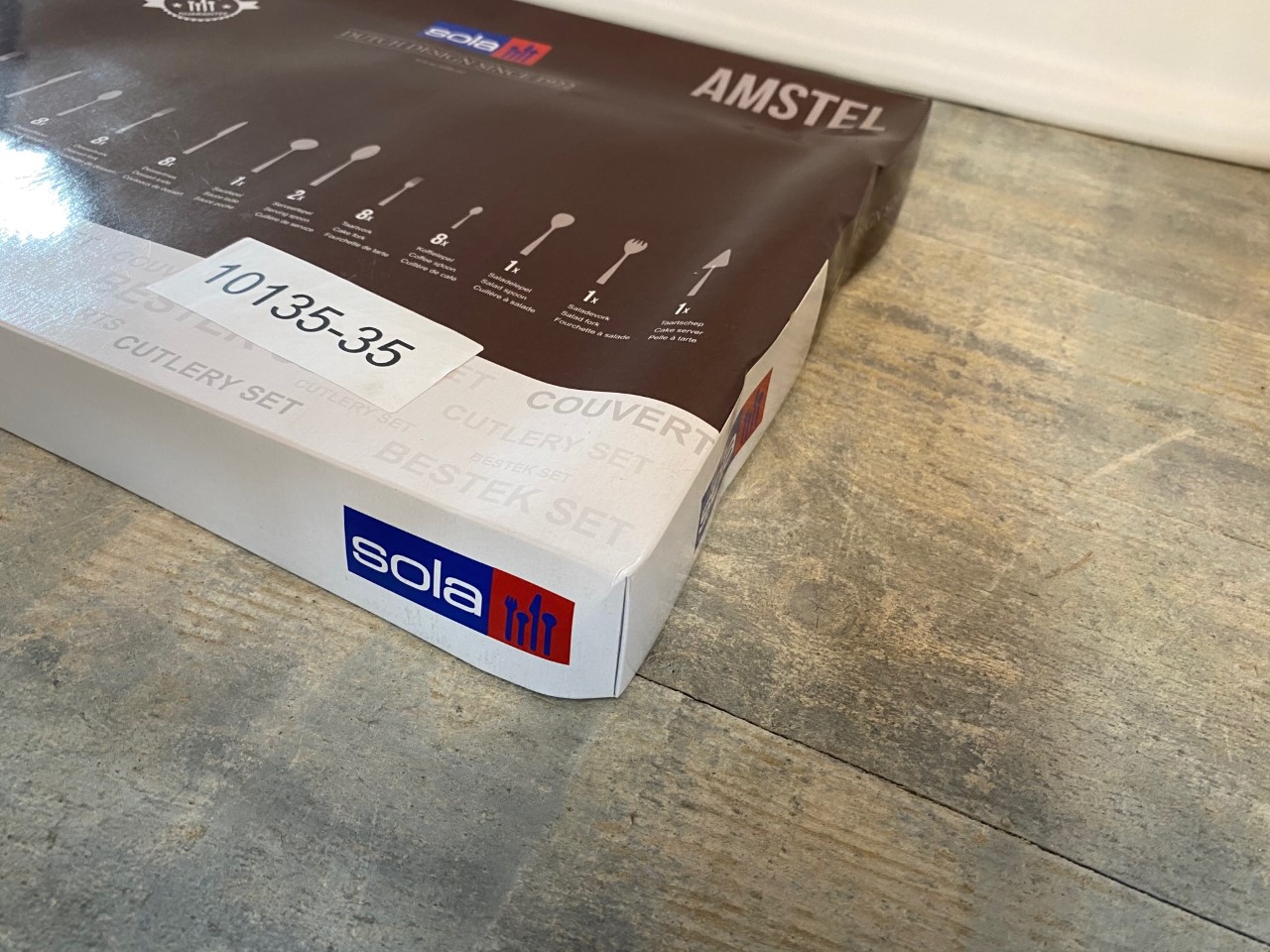 Productbeschrijving: Met de 70-delige Sola Amstel bestekset dineert u in stijl en heeft u altijd kwalitatief en luxe bestek in huis. Sola bestek is gemaakt van RVS en vergt nauwelijks onderhoud. Het snijgedeelte van de messen is van speciaal messenstaal gemaakt en de hele bestekset is vaatwasser bestendig. Deze set is erg geschikt voor jonge mensen op zoek naar hun eerste bestekset, modern vormgegeven en met een onderscheidende uitstraling, dankzij een subtiel facetrandje.