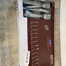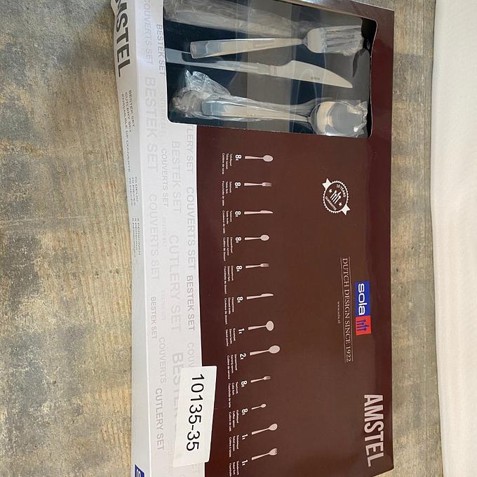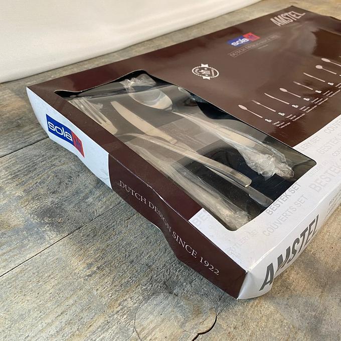 Inhoud: 8 tafellepels 8 tafelvorken 8 tafelmessen 8 dessertlepels 8 dessertvorken 8 dessertmessen 8 cocktail/ijslepels 8 cocktail/taartvorken 1 sauslepel 2 serveerlepels 1 saladelepel 1 saladevork 1 taartschep