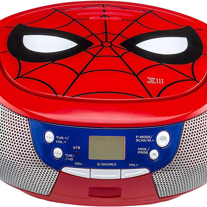 Productbeschrijving: Deze CD-boombox is uitgevoerd als Spiderman en is een leuke toevoeging op je Marvel collectie. Met deze CD-speler kun je nu volop genieten van al je favoriete muziek! Zet de boombox op je nachtkastje en genieten maar.
