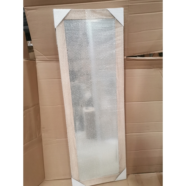 Productbeschrijving: Deze spiegel heeft een houten frame en naturel kleur. De spiegel heeft een afmeting van 140x40cm en staat leuk boven een dressoir of in de slaapkamer naast de kledingkast.