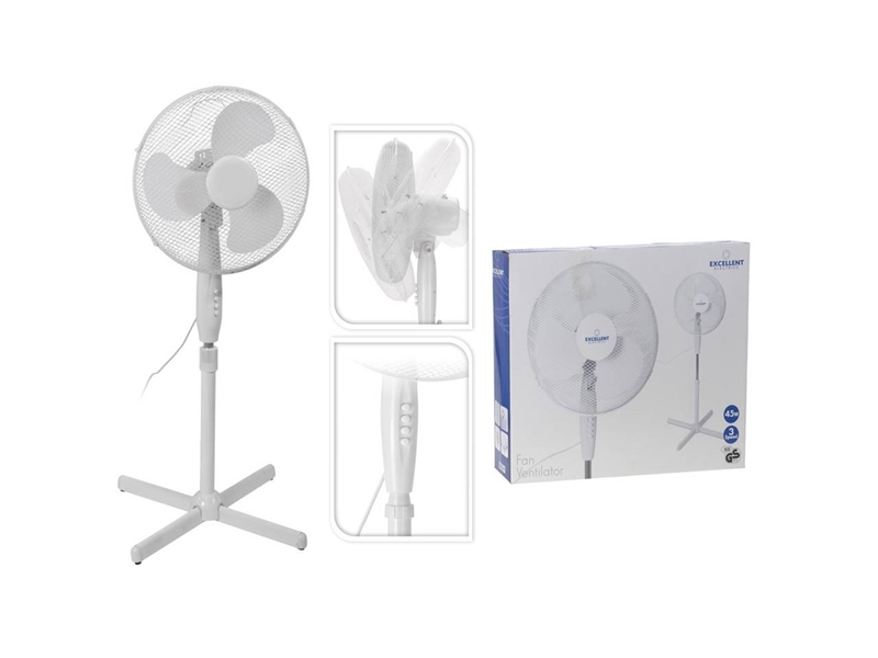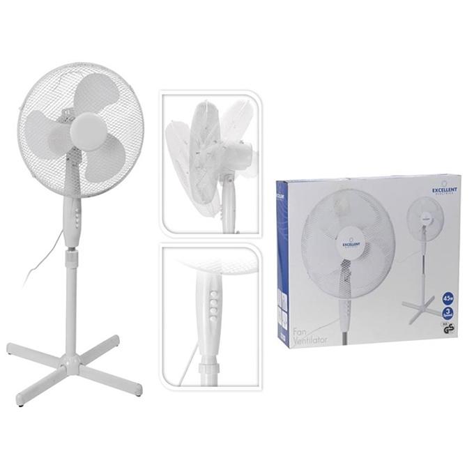 Productbeschrijving: Ventilator staand dia 40cm 220 v - 45 watt. Versstelbaar in verschillende standen en hoogtes.