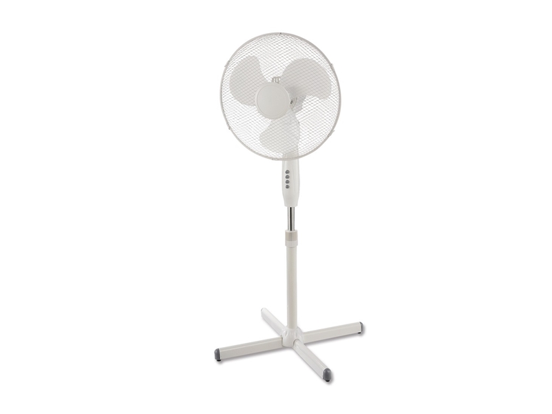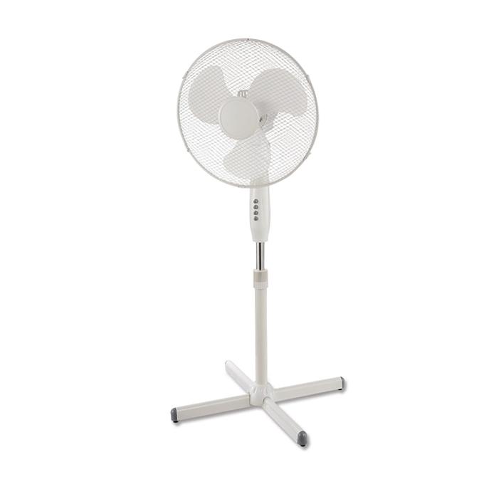 Productbeschrijving: Staande ventilator voorzien van een 40cm diameter ventilatorblad en geluidsarme motor met aan en uit schakelaar en 3 snelheden.