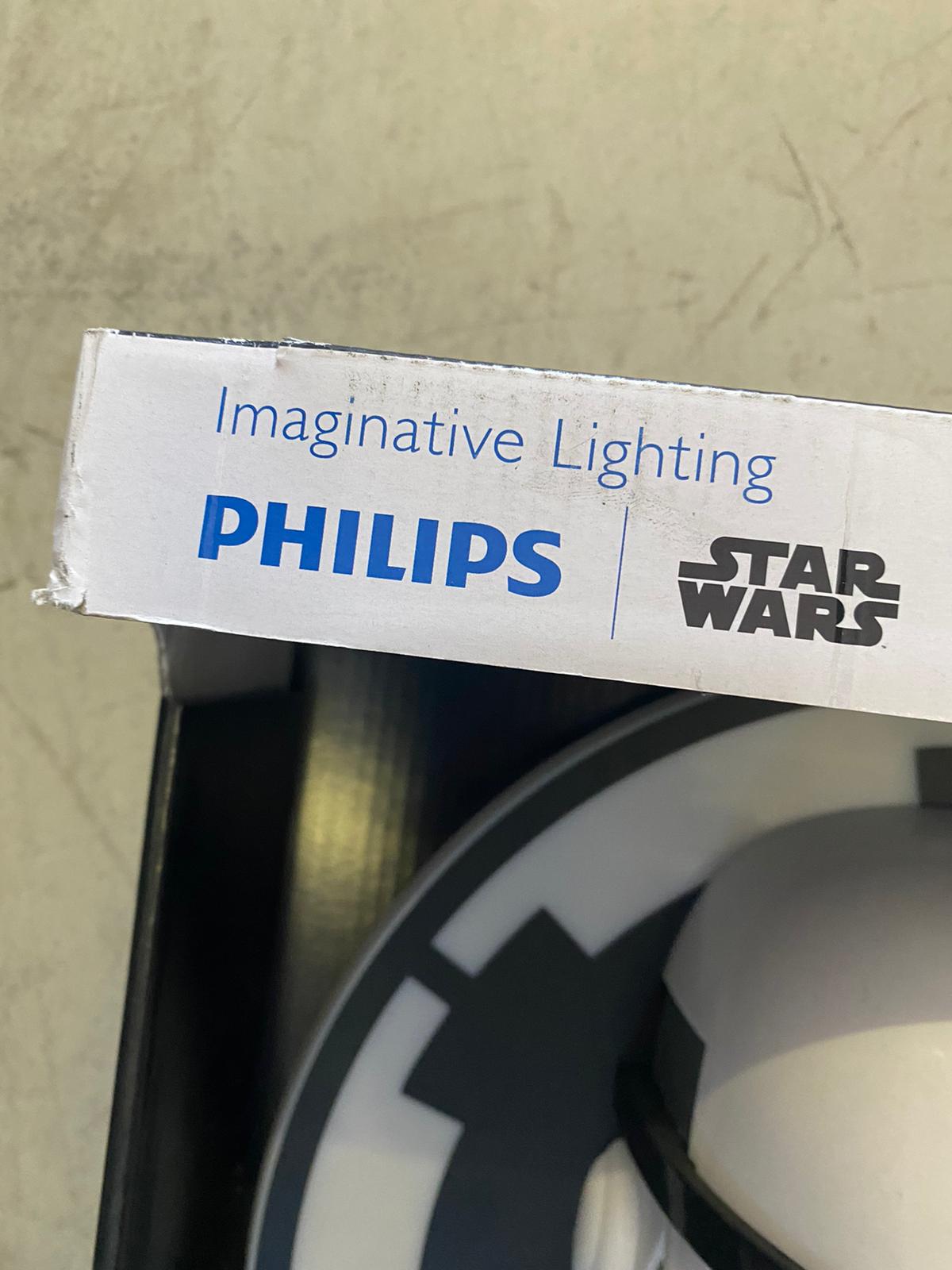 Productbeschrijving: wandlamp met motief uit de film Star Wars - Stormtrooper. Deze decoratie heeft drie modi: 1e) niets is uit 2e) nadat u op de knop hebt gedrukt, gaan beide ogen en de rode buitenring branden 3.) De volgende andere persing gaat alleen uit de buitenste ring en stralende ogen