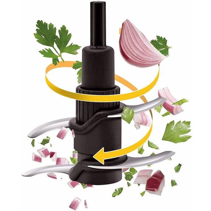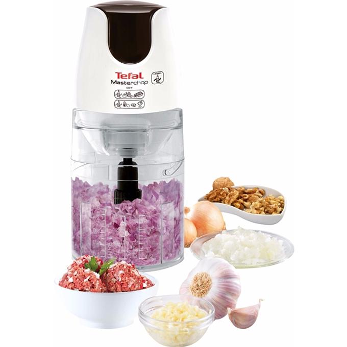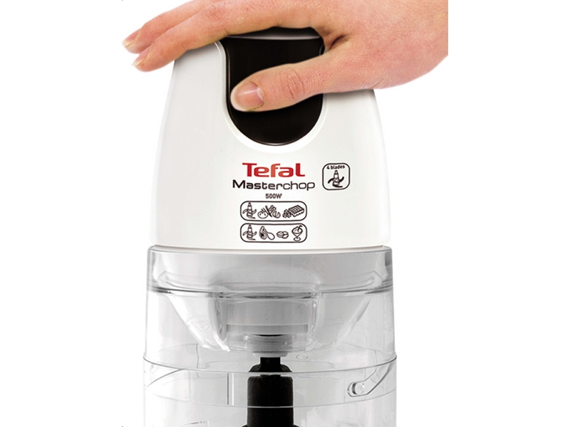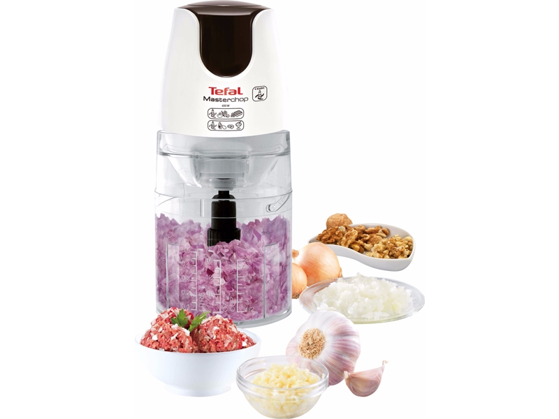 Productbeschrijving: Met de Tefal MB450B hakmolen hak, mix en maal je diverse ingrediënten, zoals groenten en fruit maar ook chocolade of noten. De mixfunctie gebruik je voor vloeibare ingrediënten; handig voor het bereiden van bijvoorbeeld babyvoeding. Met slechts één druk op de knop gaat de hakmolen aan het werk, lekker eenvoudig dus. De kom heeft een inhoud van 500 milliliter met maataanduiding, hierdoor voeg je direct de juiste hoeveelheden toe. Dankzij zijn compacte formaat berg je de hakmolen na gebruik weer gemakkelijk op in je keukenkastje. De losse onderdelen mogen in de vaatwasmachine; hoef je ze niet met de hand af te wassen.
