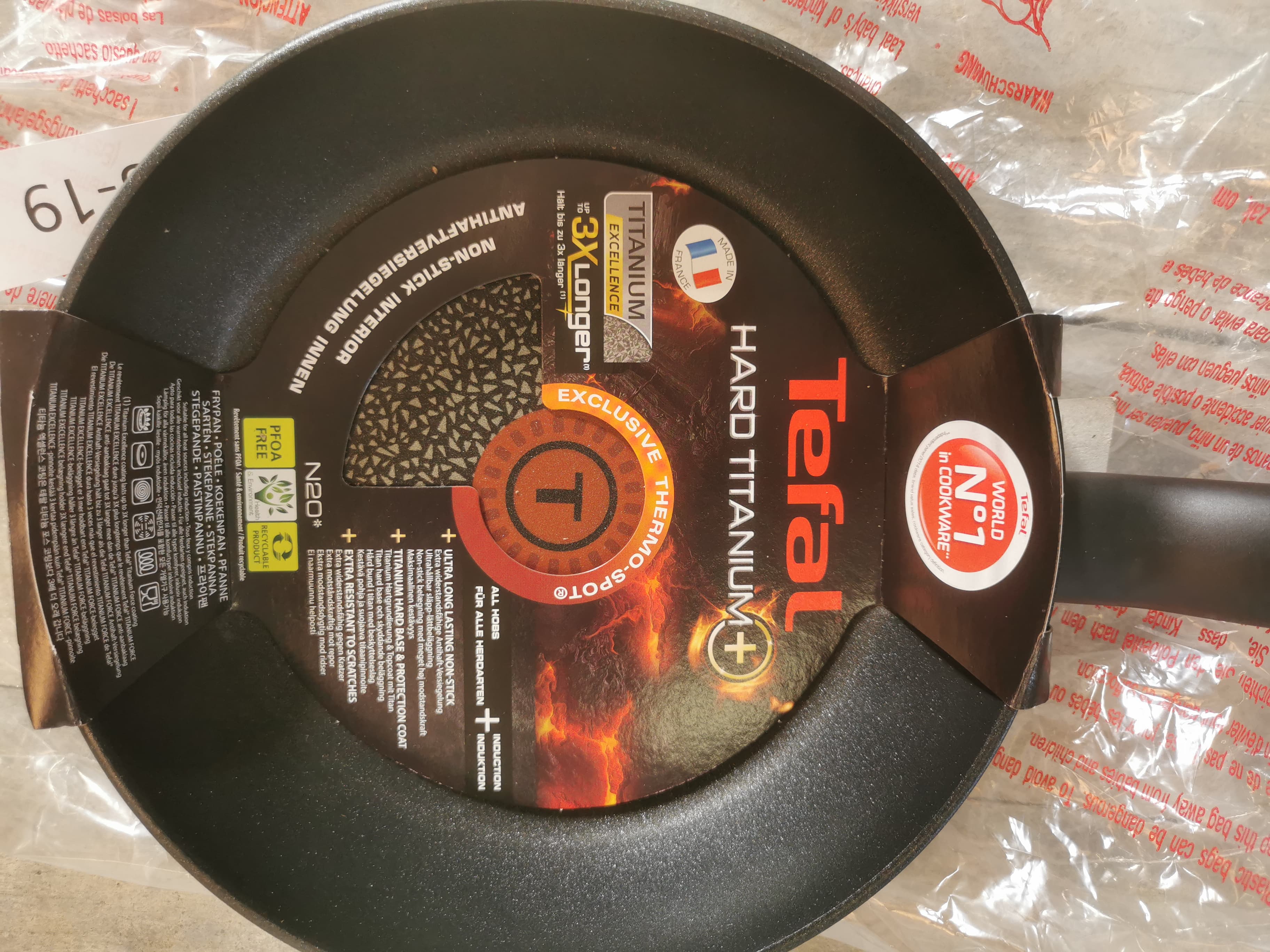 Productbeschrijving: Deze luxe maar voordelige Tefal Hard Titanium+ koekenpannenset - Ø 20 cm zorgt voor optimaal kookplezier in jouw keuken. De koekenpan zijn ideaal voor het gezond bereiden van allerlei soorten groenten, vlees en vis. De Hard Titanium+ Tefal koekenpan heeft een zeer sterke roestvrijstalen bodem die ervoor zorgt dat de warmte gelijkmatig over de totale bodem wordt verspreid. De koekenpan is voorzien van de sterkste en meest duurzame Tefal anti-aanbaklaag Titanium Excellence. Deze extra dikke anti-aanbaklaag is van een zeer hoge kwaliteit en 100% veilig (geen PFOA). Tijdens het bakken heb je geen boter of olie meer nodig en zelfs het gebruik van metalen spatels is geen enkel probleem!