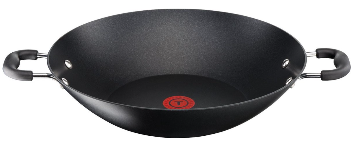 Productbeschrijving: De Expertise wokpan van Tefal is uitgevoerd met een ultrasterke Titanium Excellence anti-aanbaklaag. Tijdens het bakken heb je dan ook minder boter of olie nodig en je kunt gebruik maken van metalen spatels. Daarnaast geeft de vernieuwde rode Thermo-Spot, de warmte-indicator, aan wanneer de pan de ideale baktemperatuur heeft bereikt. De grote pan is voorzien van twee stevige handvatten.