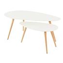 Productbeschrijving: Bijpassende salontafels met gelakt MDF blad en beukenhouten poten (set van 2)