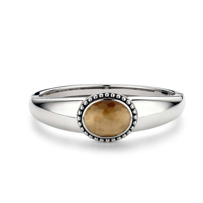 Productbeschrijving: Ti Sento Milano armband Met één grote ovalen gefacetteerde licht bruine zirkonia in parelrand zetkast Met scharnier sluiting Binnendiameter 59mm