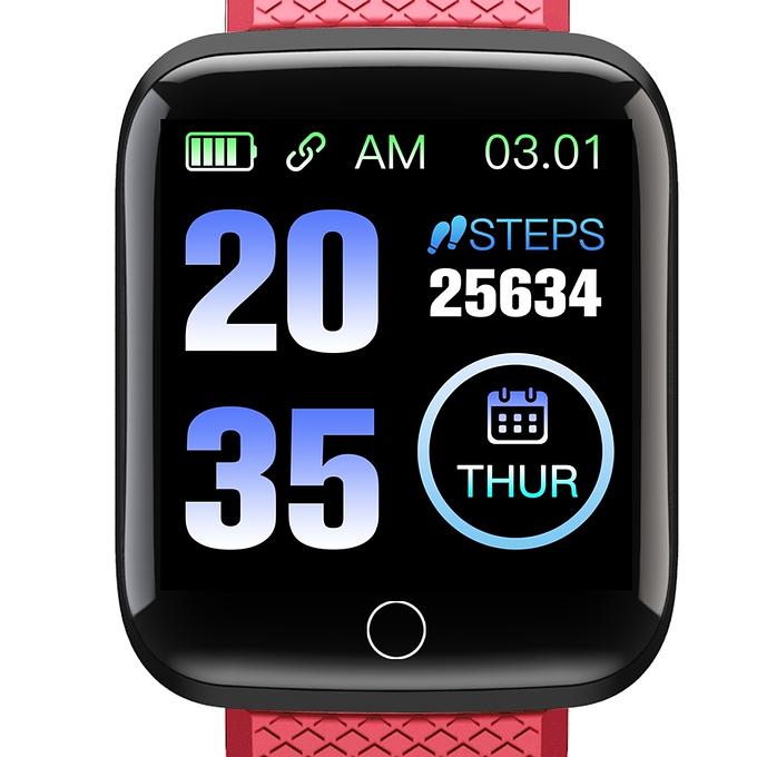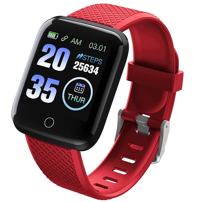 Productbeschrijving: Functies – functies – tijd, datum, stappenteller, afstandsmeter, calorieënteller, hartslag- en bloeddrukmeter en de multisport-modus. Toepassingen: de Smart Watch geeft de ontvangst van oproepen en berichten aan. Bij oproepen wordt het nummer of de naam van de beller weergegeven. Het display kan 20 tot 40 woorden weergeven. Andere toepassingen – naast het alarm beschikt het horloge ook over een anti-lost-functie en een ontspanner voor de camera. De Smart Watch is IP67 waterdicht. Design – de Smart Watch met TFT-scherm van 0,96 inch biedt een hoge-resolutie ervaring. Je kunt dit fitnesshorloge in 5 verschillende kleuren krijgen: zwart, rood, blauw en groen. Omdat het horloge unisex is, is er voor iedereen een kleur bij.