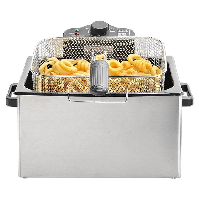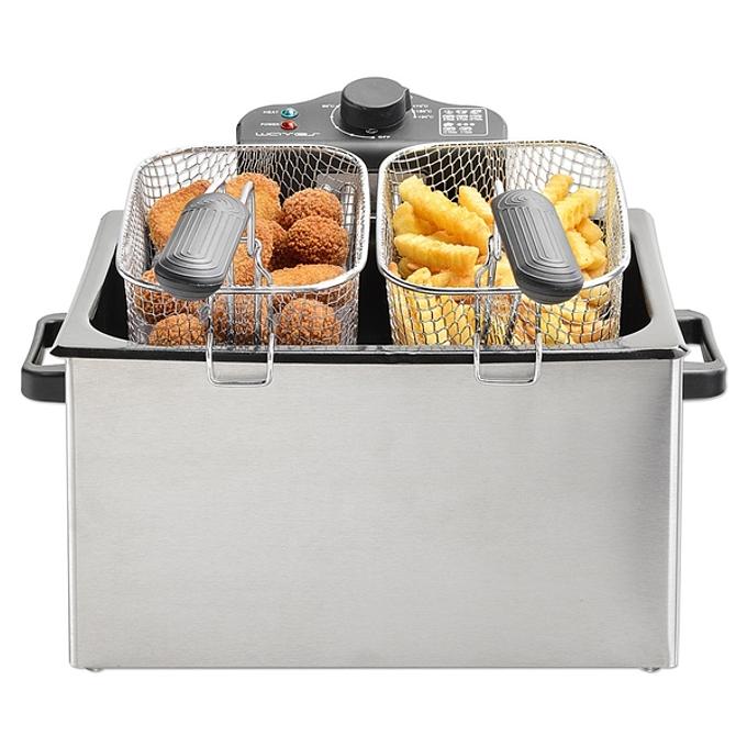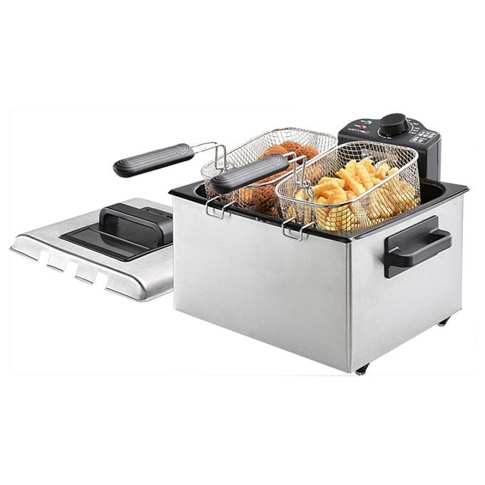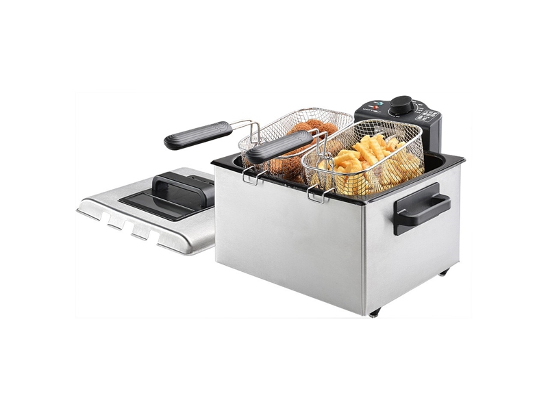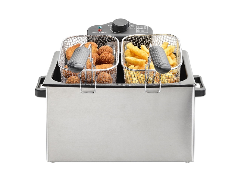 Productbeschrijving: Maak eenvoudig en snel lekkere frietjes en andere snacks met deze stijlvolle Tomado TM-5534 friteuse. De friteuse heeft 1 groot mandje met ruime inhoud om een grote hoeveelheid te frituren en 2 kleine mandjes, die naast elkaar passen. Zo kunt u snel en eenvoudig bijvoorbeeld de snacks apart van de frietjes frituren.