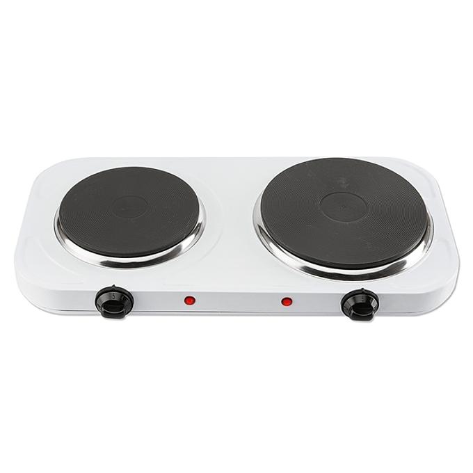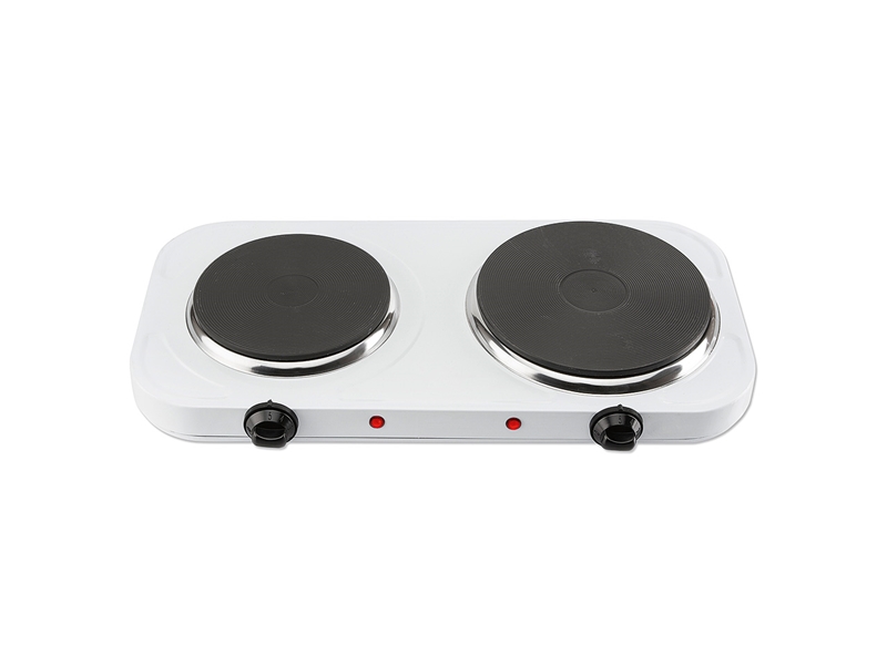 Productbeschrijving: Dubbele kookplaat voorzien van 2 kookpitten met een diameter van 15,5cm en 18,5 cm. De dubbele kookplaat is voorzien van 2 afzijdig van elkaar te gebruiken thermostaten met controlelampjes. Geschikt voor grote en kleine pannen.