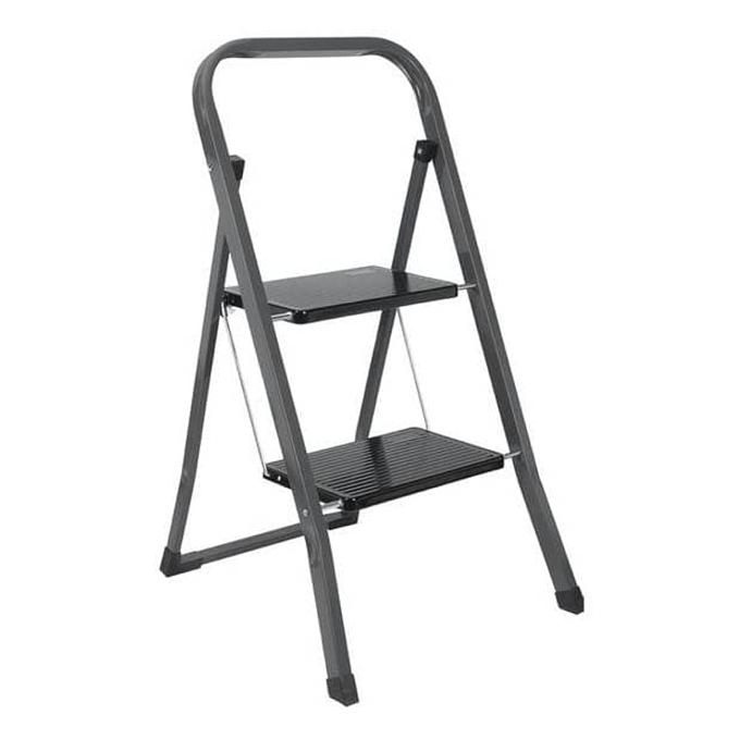 Productbeschrijving: De Tomado Pireneo huistrap met 2 treden zal je met zekerheid behulpzaam zijn als je op hoogtes moet werken; een muur verven, ramen schoonmaken. Je kunt er veilig mee werken. De treden en de voeten zijn met anti-slipribbels uitgevoerd. Hij is zeer stevig en stabiel en kan tot 150kg verdragen. Het platform is 83 cm hoog. 5 jaar garantie. De veiligheidsinstructies staan op het etiket. GS, TUV en 14183 gecertificeerd. Made in Italy.