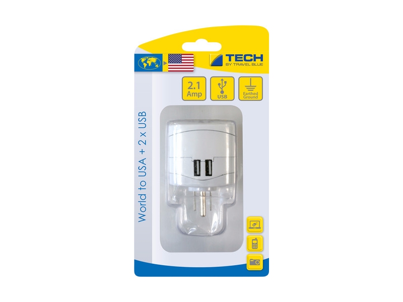 Over de Travel Blue wereld adapter usa + usb