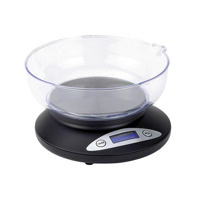 Productbeschrijving: Deze moderne keukenweegschaal met weegbak weegt tot maximaal 2 kg en is nauwkeurig tot op één gram welke is af te lezen van het LCD display. Verder beschikt de weegschaal over een mechanische tarraweegfunctie, waarmee het gewicht van de toegevoegde hoeveelheid van verdere ingrediënten (bijv. bakingrediënten) apart kan worden aangegeven. Deze keukenweegschaal heeft de mogelijkheid te dienen als brievenweger.