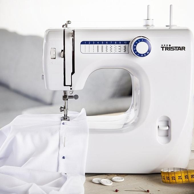 Voorzien van: 10 ingebouwde patronen, draadsnijder, dubbel naald, spoelopwindas, vrije arm mogelijkheid, achterwaarts en voorwaarts steken, pedaal, lampje en adapter