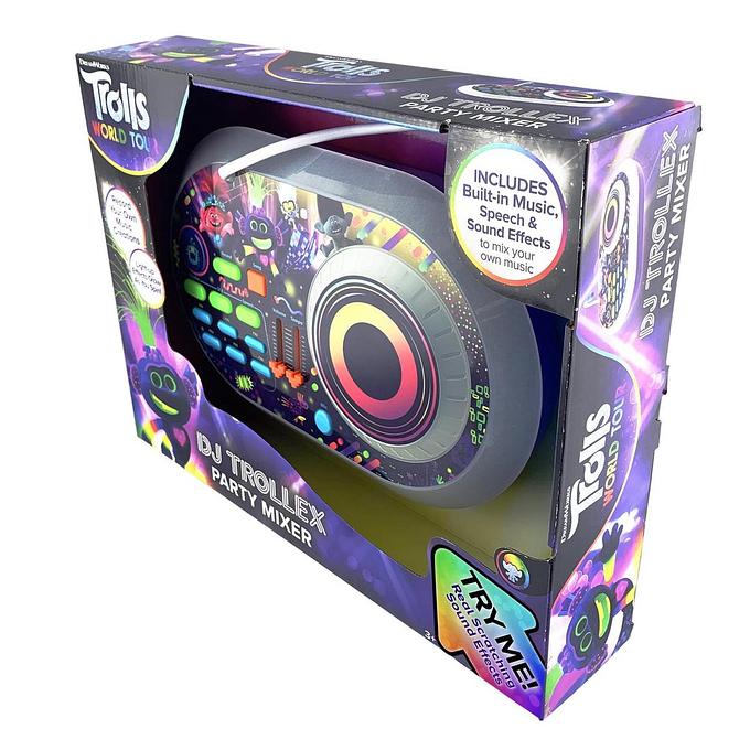 Productbeschrijving: De nieuwe Trolls mixer met ingebouwde microfoon heeft de mogelijkheid om verschillende nummers te mixen en je eigen gemaakte nummers op te slaan.