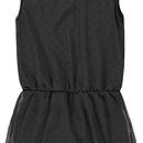 Productbeschrijving: Hier en daar zon! Van de subtiele goude stippenprint op deze mouwloze jurk raken alle meisjes in een zonnig humeur. De antraciete jurk is gemaakt van soepelvallende crêpestof en voorzien van een oogsluiting met stylish gele knoop op de rug. De transparante laag geeft een extra chique twist. Legging, maillot, vest en/of lange sjaal erbij en de party-look is compleet. T'ND topfavoriet!