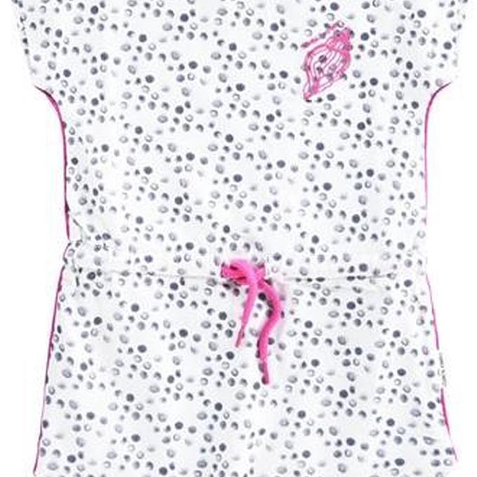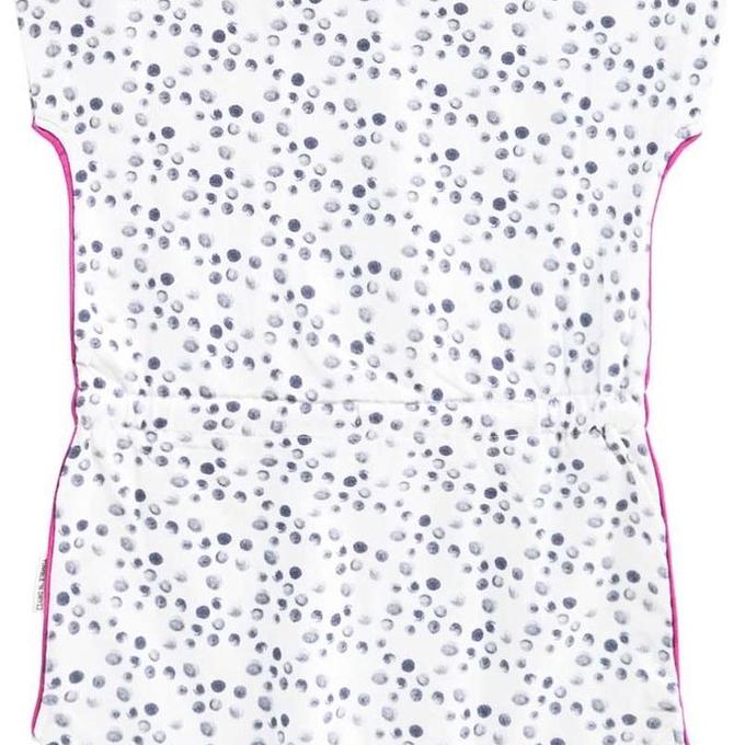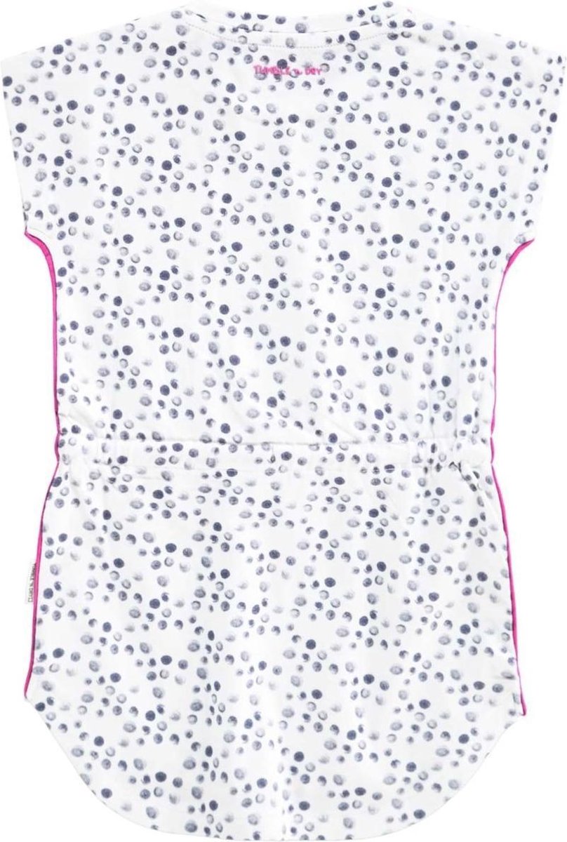 Productbeschrijving: It's gonna be a dot summer! Deze witte jurk met graphic zwarte stippenprint is perfect voor warme zomerdagen. Het minijurkje is gemaakt van licht stretchend biologisch katoen en voorzien van een regular fit, kapmouwen, handige drukknopen op de schouder, roze biezen en een elastische taille met roze rijgkoord. Het schelp-logo geeft 'm de strandfactor. Combineer eventueel met een printed legging en (sweat)vest en shine on. Tumble 'N Dry seasons' highlight!