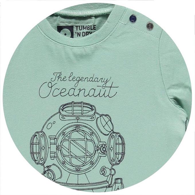 Productbeschrijving: The legendary oceanaut! Elke zeeheld wil dit T-shirt met stoere grafische print onmiddellijk hebben. Het is gemaakt van superzacht katoen en voorzien van handige drukknopen op de schouder. De dubbelgestikte zijbiezen zorgen voor een flashy touch. Kies uit donkerblauw of pistachegroen, mix 'N match met een jogg of short en duik in het nieuwe seizoen. T'ND seasons' special!