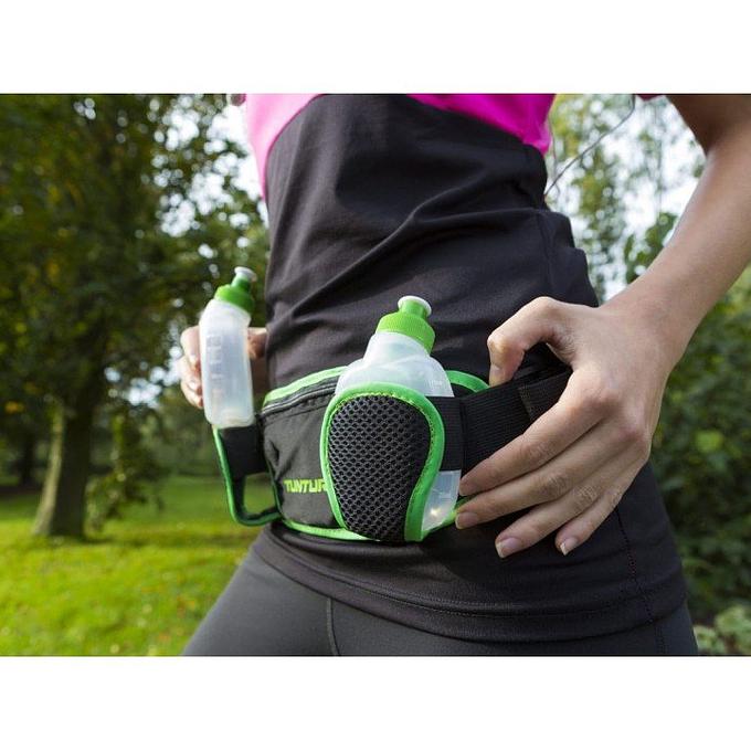 Productbeschrijving: De Tunturi Running Belt is een hardloopset die je om je middel draagt. Deze riem"" heeft 2 170 ml drinkflesjes om water of sportdrank mee te nemen tijdens het hardlopen. Aan de voorkant zit een vak met ritssluiting om overige spullen mee te nemen. Een MP3 speler bijvoorbeeld. Er zit een speciaal gat in het vak waar je het snoer van een koptelefoon doorheen kunt halen. De Tunturi running belt is licht genoeg om niet in de weg te zitten tijdens het hardlopen. De running belt maak je vast met een clip op je rug.