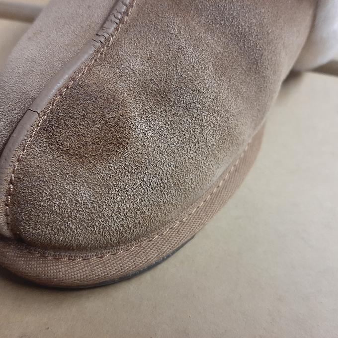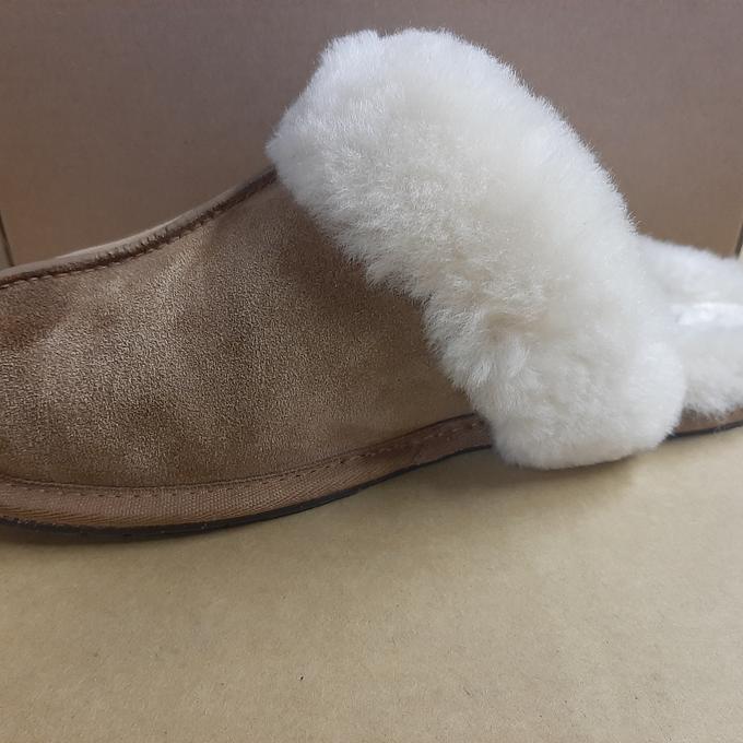 Productbeschrijving: Deze knusse pantoffels zijn gemaakt van Nieuw-Zeelandse schapenvacht en passen bij elke gelegenheid, waar je die extra gezelligheid en warmte nodig hebt. De schoenen zijn aan de binnenkant gevoerd met zacht schapenvacht en aan de buitenkant is suede huid, die in het midden aan elkaar is genaaid.