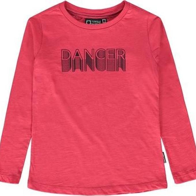 Productbeschrijving: Dance the day away! Dankzij deze 'Dancer' longsleeve gaan alle meisjes dansend de dag door. Dat komt door die print met hippe retroletters, maar ook door het comfy katoen, de subtiel gemêleerde look en de hippe framboosrode kleur.