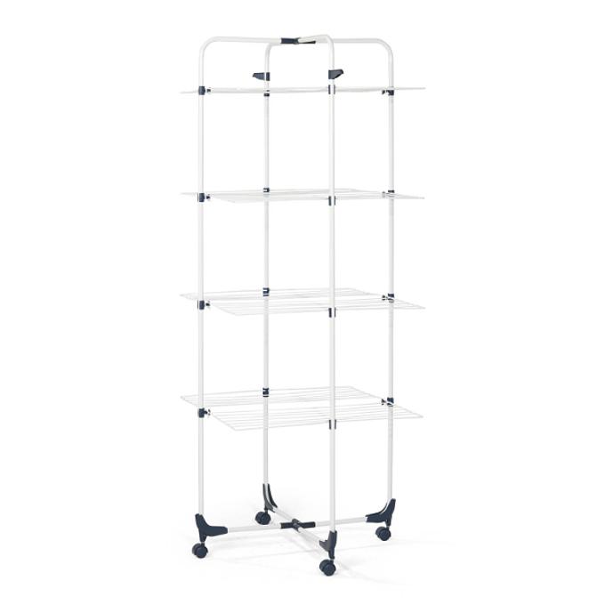 Productbeschrijving: De Vileda droogtoren beschikt over 4 droogniveau's die samen zorgen voor 40 meter drooglengte. Dat maakt de droogtoren geschikt voor 2 tot 3 wasladingen. De droogtoren is makkelijk inklapbaar. De droogtoren is ook half inklapbaar. Daarbij is de droogtoren voorzien van 2 handige kleerhangerhouders. Deze droogtoren is gemaakt van kunststof en staal.
