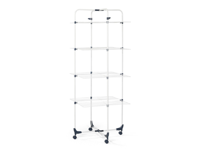 Productbeschrijving: De Vileda droogtoren beschikt over 4 droogniveau's die samen zorgen voor 40 meter drooglengte. Dat maakt de droogtoren geschikt voor 2 tot 3 wasladingen. De droogtoren is voorzien van zwenkwieltjes en is makkelijk inklapbaar. De droogtoren is ook half inklapbaar. Daarbij is de droogtoren voorzien van 2 handige kleerhangerhouders. Deze droogtoren is gemaakt van kunststof en staal.