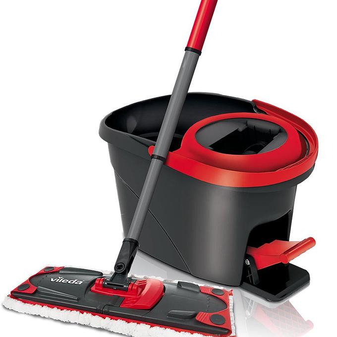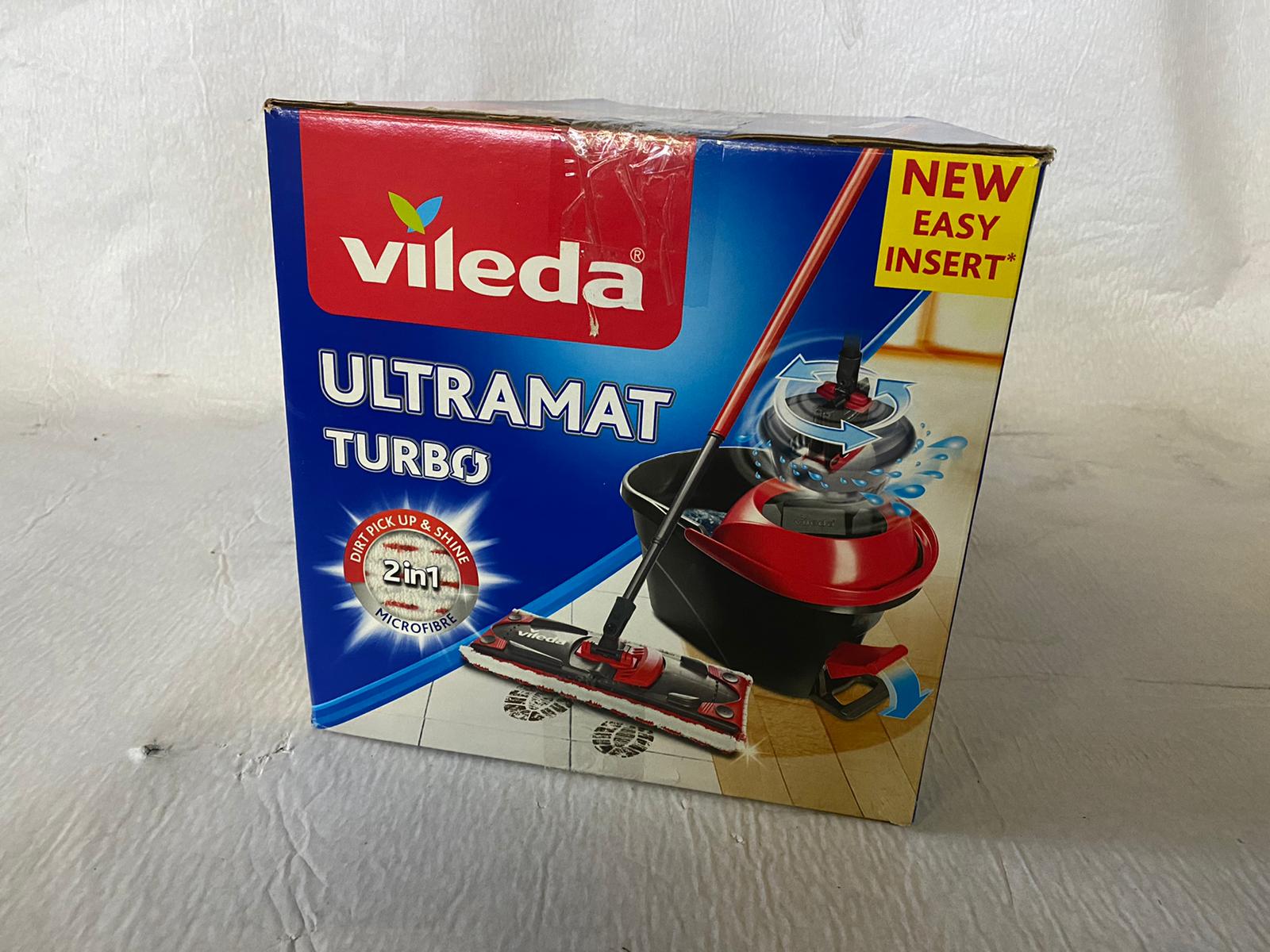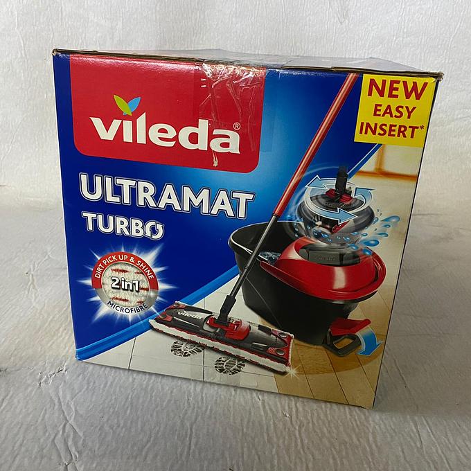 Productbeschrijving: Ultramat Turbo van Vileda is een vlakke vloersysteem geleverd met een emmer met roterende pers. Je duwt op de pedaal en activeert hiermee het roterend uitwringsysteem, geen natte handen of rug pijn meer! Dankzij de roterende pers is het mogelijk de vochtigheid van de hoes zelf te bepalen, daardoor is dit systeem perfect om alle soorten vloeren te poetsen, zelfs parket en delicate vloeren! De wringer is voorzien van extra bescherming om opspattend water te vermijden. Ergonomisch en praktisch, Ultramat Turbo is jouw beste bondgenoot om grondig en gemakkelijk schoon te maken. De witte microvezel zorgen voor een resultaat zonder strepen en de rode polyamide vezels maken het vuil beter los en nemen het op. De hoes is wasbaar op 60°C.