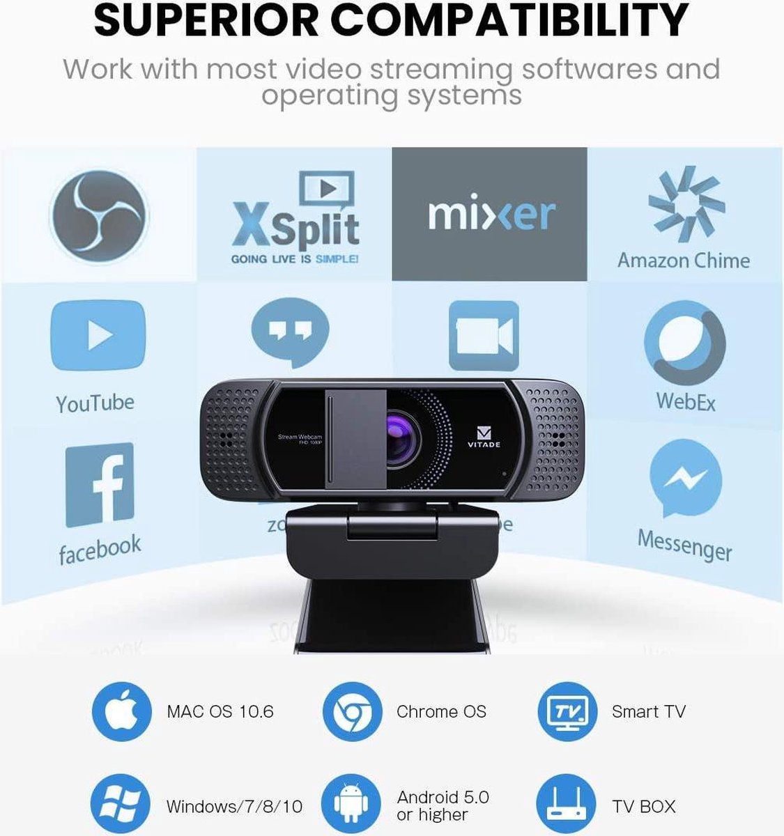 Over de Vitade webcam met microfoon 1080HD Web camera