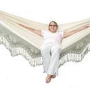 Productbeschrijving: De hangmat is voorzien van gedetailleerde hand gehaakte franjes langs elke kant, waardoor zich iedereen als een koning voelt. Een uitstekende aanvulling in elke achtertuin, hut of op de camping.