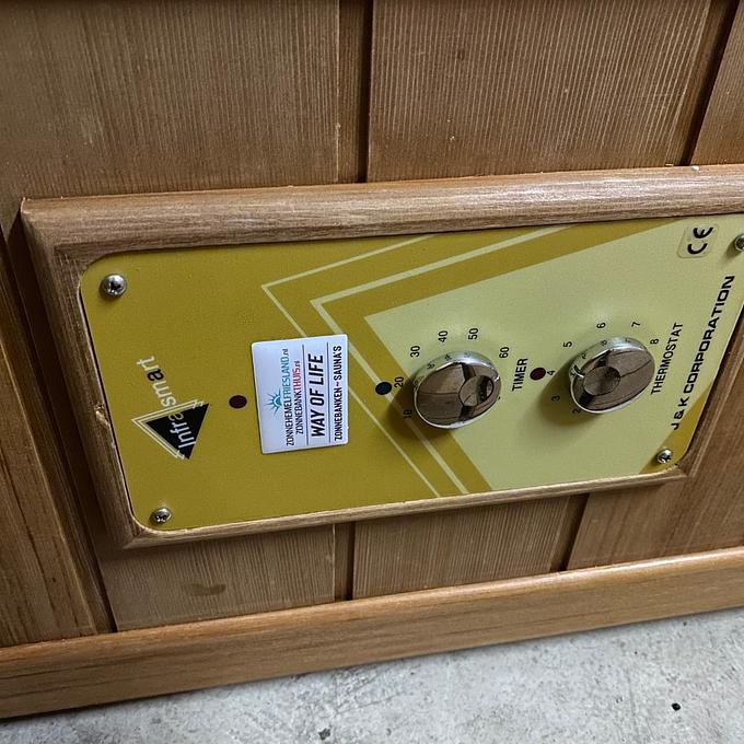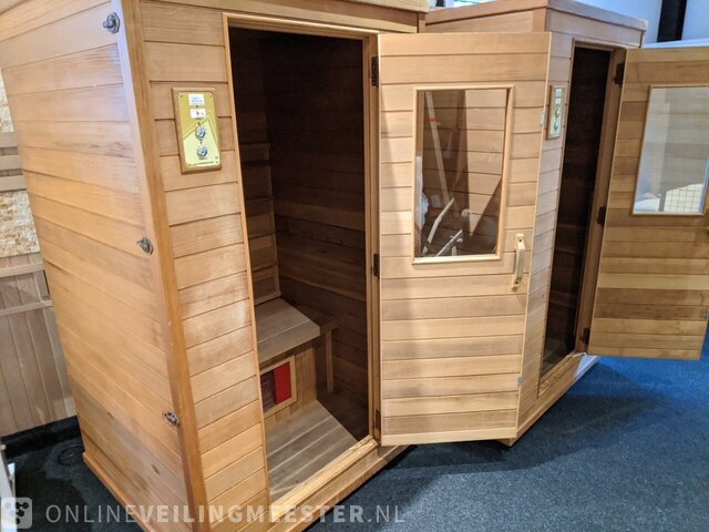 Productbeschrijving: Tweepersoons infraroodsauna. De infraroodsauna is voorzien van 5 middellange rolf stralers (lange levensduur), digitale timer, instelbare tijd en temperatuur en bedienbare verlichting. De sauna is te installeren doormiddel van een 220v stekker waardoor hij direct aan te sluiten is op het gewone stopcontact. Daarnaast is de sauna voorzien van een klik-systeem voor eenvoudige montage.