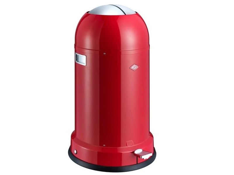 Productbeschrijving: De Wesco Kickmaster is een ronde pedaalemmer met een inhoud van 33 liter. De prullenbak heeft een bol deksel dat bestaat uit twee delen die opzij schuiven wanneer hij opent. Deze afvalemmer is te bedienen via een pedaalmechanisme zodat hij ook makkelijk te openen is wanneer je je handen vol hebt. Wanneer je het pedaal loslaat hoor je niets; het deksel is voorzien van een ingebouwde demper zodat hij gecontroleerd sluit. De Wesco Kickmaster heeft een vuurbestendige binnenemmer en de buitenkant van de prullenbak is gemaakt van glanzend roestvrijstaal. Wil je je prullenbak liever op een andere plek? De kunststof ring aan de voet voorkomt krassen op de vloer en biedt extra stevigheid waardoor de emmer goed blijft staan.