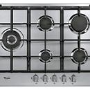 Productbeschrijving: De Whirlpool AKR 3291 IX gaskookplaat is voorzien van 5 branders waaronder 1 wokbrander en 3 gietijzeren pannendragers. De elektrische vonkontsteking vindt plaats door middel van éénknopsbediening. De branders zijn beveiligd met een thermokoppel, waarbij de gastoevoer wordt afgesloten als de vlam dooft. Deze gaskookplaat is uitgevoerd in RVS.