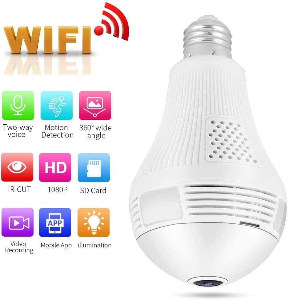 Productbeschrijving: High-definition beeldkwaliteit: deze minicamera is uitgerust met een 1080P high-definition beveiligingscamera. Het beeld is helder en delicaat, de kleur is rijk, het beeld is helder en zelfs als je op het scherm staat geheel zal het nog steeds een duidelijk beeldeffect hebben en zal de beeldweergave duidelijker zijn. Verborgen: de bolvormige camera is moeilijk te vinden, het is een miniatuurcamera. Dubbele lichtbron met verlichting. Dubbele lichtbron met verlichting. De 3 x 1W LED-lamp zorgt voor een heldere verlichting en werkt als een normale lamp.Werkuren zijn tot 50.000 uur.