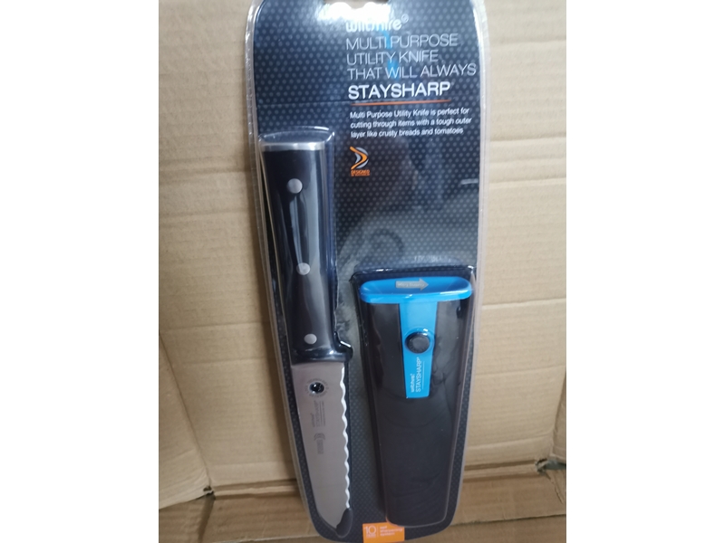 Productbeschrijving: Dit mes is een alledaags bereidingsmes voor het snijden van knapperig brood of voedsel met een harde huid, zoals tomaten, en maakt het bereiden van voedsel licht werk met zijn Staysharp-lemmet. Dankzij het gepatenteerde zelfslijpsysteem weet je zeker dat je geen botte messen meer hebt.
