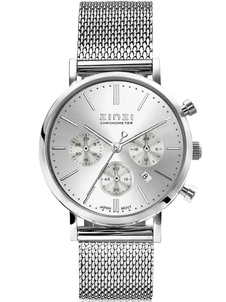 Productbeschrijving: De Chrono watch is het nieuwste sportieve dameshorloge van Zinzi. Het stoere ontwerp combineert een edelstalen horlogekast met een glanzende milanese band. Het Zinzi hartje is heel subtiel verwerkt in de secondewijzer. Met de knoppen bedien je eenvoudig de stopwatch. Het Zinzi Chronometer ZIW1502 dameshorloge heeft een zilverkleurige edelstalen kast en een milanese band. Het horloge heeft een Zilverkleurige wijzerplaat met zilverkleurige details, sterk mineraal glas en is 5 ATM waterdicht (regen- en spatwaterdicht).