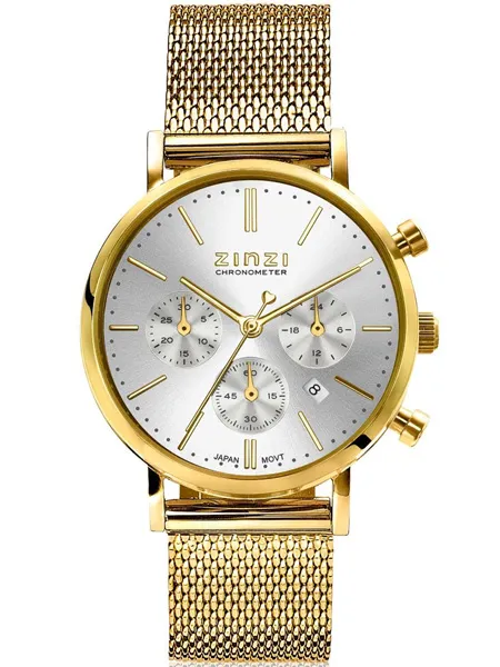 Productbeschrijving: De Chrono watch is het nieuwste sportieve dameshorloge van Zinzi. Het stoere ontwerp combineert een edelstalen horlogekast met een glanzende milanese band. Het Zinzi hartje is heel subtiel verwerkt in de secondewijzer. Met de knoppen bedien je eenvoudig de stopwatch. Het Zinzi Chronometer ZIW1533 dameshorloge heeft een goudkleurige edelstalen kast en een milanese band. Het horloge heeft een zilverkleurige wijzerplaat met goudkleurige details, sterk mineraal glas en is 5 ATM waterdicht (regen- en spatwaterdicht).