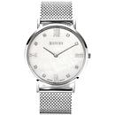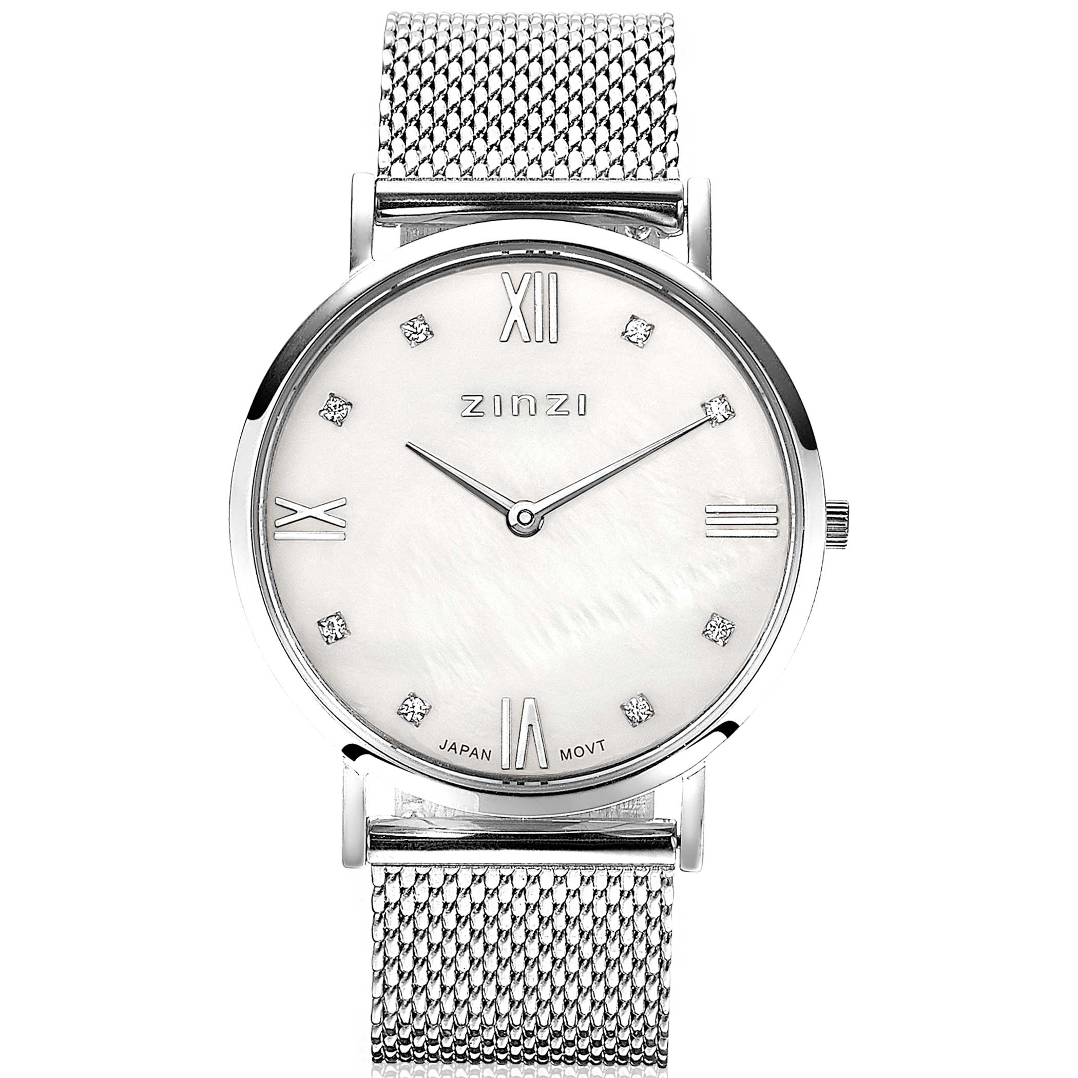 Productbeschrijving: Het nieuwe ZINZI Roman horloge is een maatje kleiner dan de populaire Retro watch. Met zijn geheel stalen kast van 34mm oogt dit horloge trendy op de dunnere pols. En de sierlijke romeinse cijfers geven de wijzerplaat een tijdloos karakter. Voorzien van een witte parelmoer wijzerplaat en bezet met witte zirconia's op de uur-aanduiding. Het extra dunne Japanse uurwerk met datum en de platte ronde stalen kast (34mm) zorgen voor een elegante maar fashionable look. De stalen meshband is eenvoudig te verwisselen door het handige schuifsysteem aan de achterkant. 5atm waterbestendig (tegen regen en spatwater) en met sterk mineraal glas. Want kwaliteit staat bij Zinzi voorop.